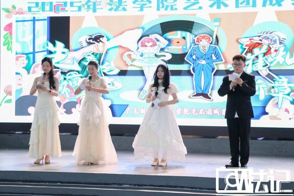 2025年5月17日晚上,由广东财经大学佛山校区法学院文娱部主办的法学院艺术团成果展在佛山校区师生综合服务中心举行。本次成果展以“艺韵䄠继,熣灿华章”为主题,参与本次成果展的嘉宾有学生会文体生线轮值主席伍舒莹、法学院文娱部副部长汤宝怡、林纬豪,以及法学院艺术团团长、副团长和各位队长。