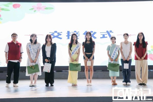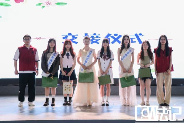 所有队伍表演结束后,便进行交接仪式,23级的旧任团长、队长为24级的新任团长、队长送上礼物,并为24级团长、队长带上皇冠和绶带,随后24级的新任团长、队长也为23级的旧任团长、队长送上礼物。交接现场,师兄师姐对师弟师妹们表达了热切的祝福、鼓励与期待,师弟师妹们也对师兄师姐回应了真挚的敬意与感谢。