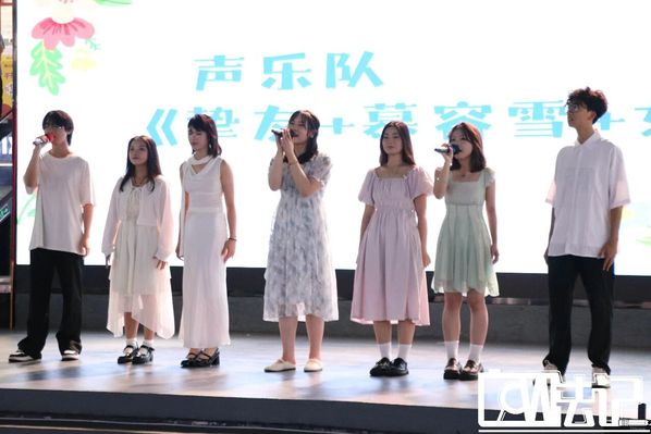 最后压轴上场的是声乐队,他们带来了三首歌曲,分别是《挚友》《慕容雪》和《女孩》。队员们专注投入地演唱,用饱含深情的声音,将歌曲中的细腻情感娓娓道来。