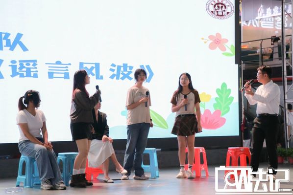 游戏过后,表演继续进行。首先是由戏剧队带来的小品节目《谣言风波》,演员们用极具感染力的台词以及生动自然的表演,借“关系户”与“替罪羊”之间的谣言为源头展开剧情,引发观众们思考职场协作表象下如何应对利益争夺与人心较量。