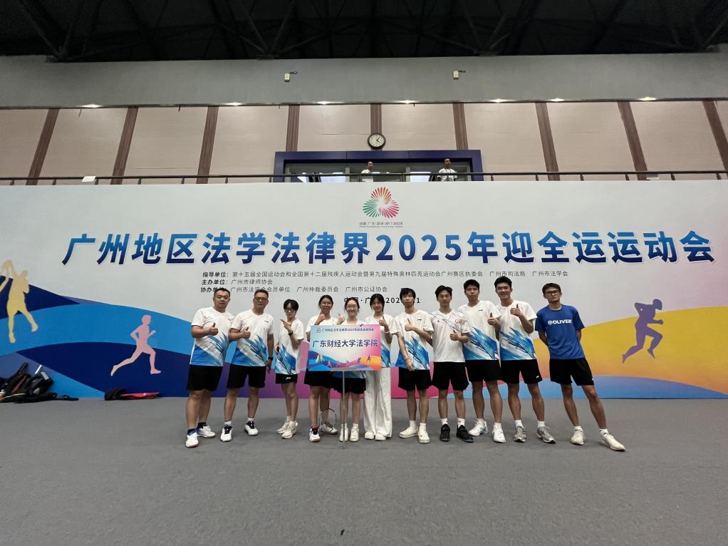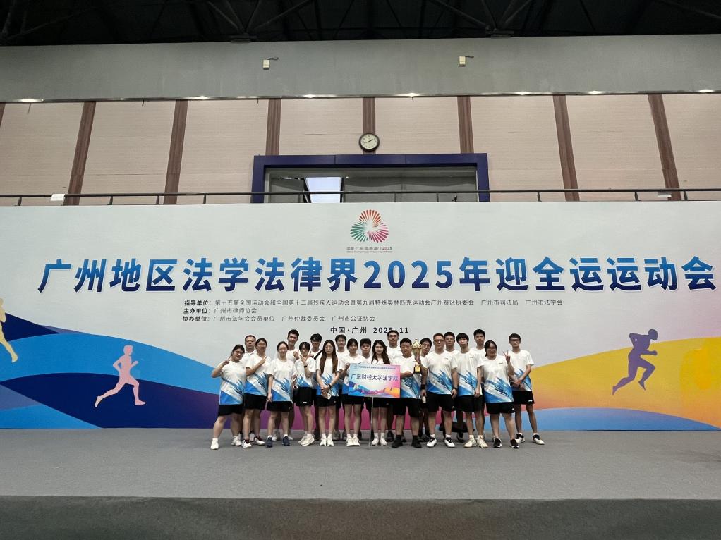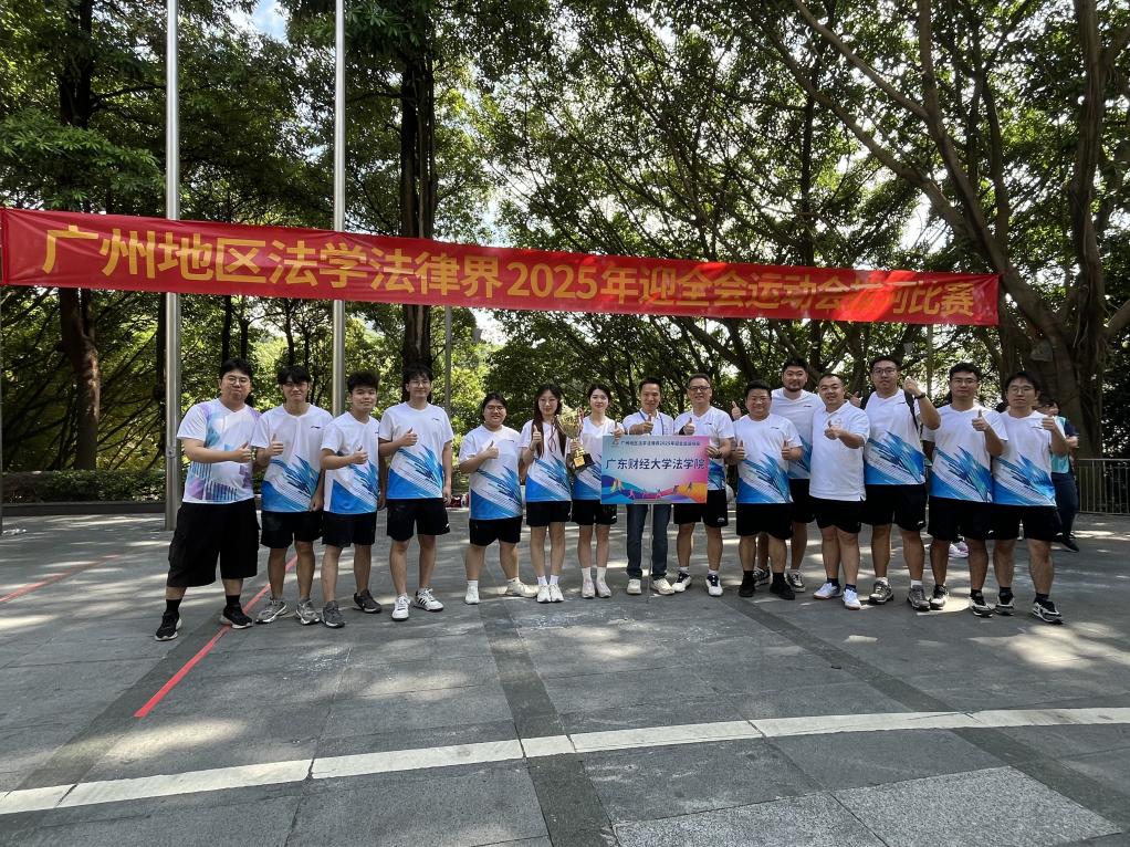 秋高气爽,羊城洋溢着迎接全运会的热烈氛围。2025年11月1日,广州地区法学法律界2025年迎全运运动会隆重举行,广东财经大学法学院受邀参赛。法学院党委副书记罗伟带领20余名师生代表分别组成羽毛球队与拔河队参赛。两支队伍在强手如林的比赛中凭借顽强的拼搏精神和出色的团队协作,过关斩将,羽毛球队闯进16强,拔河队斩获冠军,充分展现了我院师生强大的凝聚力和团结奋进的非凡力量。