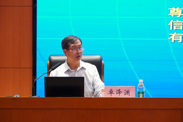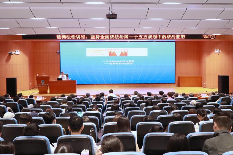 2025年11月17日下午,由广东财经大学法学院、广东财经大学法治与经济发展研究所、广东财经大学法律与社会治理研究院联合主办的“坚持全面依法治国—‘十五五’规划中的法治蓝图”主题讲座在广州校区正心堂顺利举行。本次讲座由中央党校(国家行政学院)教授、博士研究生导师、第八届中国法学会副会长卓泽渊教授主讲,广东财经大学副校长鲁晓明教授主持。法学院党委书记陈静、院长赵景琛、副书记罗伟、副院长刘薇、副院长邹郁卓、谢伟教授、戴激涛教授、黎运智副教授、丁朋超副教授、李振宇博士、李卓昕博士等教师代表以及广东省人民检察院广州铁路运输分院的检察官、干警等近20人出席本次讲座。我校本科生、研究生近400名同学参加。