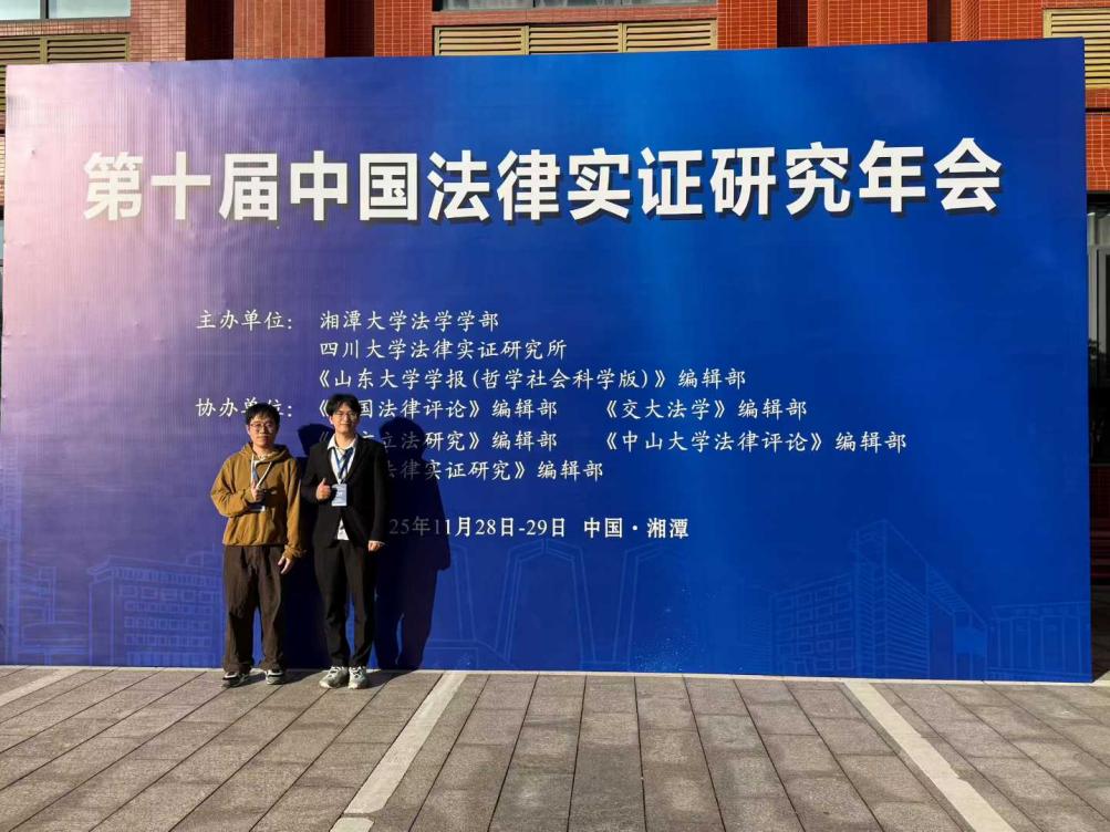 11月28日-29日上午,第十届中国法律实证研究年会在湘潭大学隆重召开。我院2025级数字法治专业研究生李为梁和2025级法律(非法学)专业研究生郭伟牧受邀参会并发言,与来自全国各地的法学专家学者共聚一堂,共襄学术盛宴。