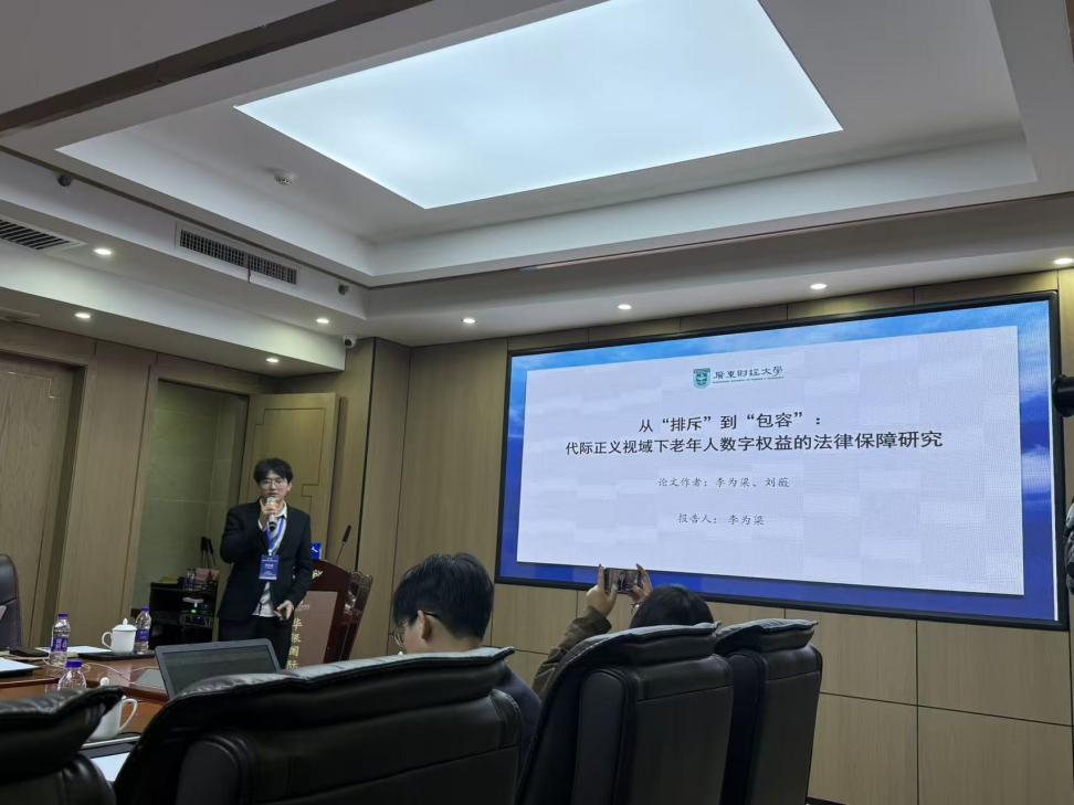 当日下午,在“犯罪、刑罚与数字正义”分论坛上,李为梁同学作了题为《从“排斥”到“包容”:代际正义视域下老年人数字权益的法律保障研究》的主题分享。他从代际正义的独特视角出发,深入分析了老年人在数字时代面临的权益保障困境,利用实证研究方法系统分析了算法权力异化侵蚀老年人数字权益的深层逻辑,系统探讨了从排斥到包容的法律保障路径,提出了富有建设性的法律对策建议。