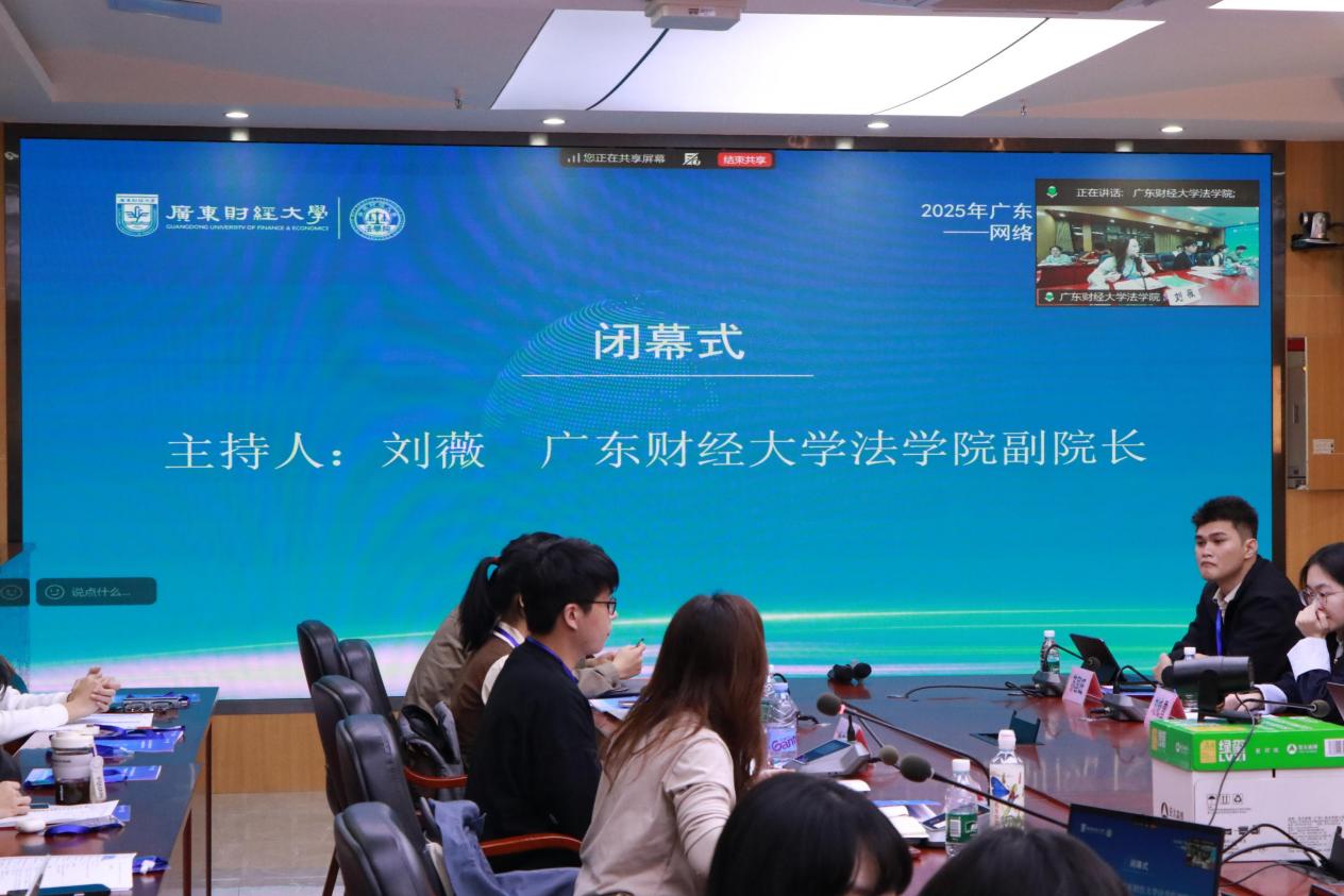 论坛闭幕式由刘薇主持。她对投稿论文的评审专家、四位老师的专业评议、会议工作人员以及线上线下参会的各位同学表示感谢,并寄语同学们珍惜此次学术之旅,收获成长,期待未来与兄弟院校能够在广财法学院再次相聚,共同点亮更多新知。