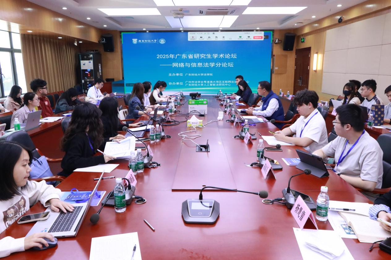 为加强研究生学术交流,由广东财经大学法学院主办,广州市法学会粤港澳大湾区互联网法治研究中心、广东财经大学人工智能法研究中心协办的2025年广东省研究生学术论坛——网络与信息法学分论坛于2025年11月29日在广东财经大学广州校区立德楼731会议室以线上线下融合方式顺利召开。中山大学粤港澳发展研究院叶一舟副教授、广东外语外贸大学国家安全研究院副院长谢宇副教授、广东财经大学法学院副院长刘薇教授、广东财经大学人工智能法研究中心主任姚志伟教授、王海洋博士作为评议专家线下参加了本次论坛,来自中南财经政法大学法学院、青海民族大学法学院、广东财经大学法学院等高校共计200余名研究生同学参加了本次论坛。论坛投稿论文聚焦人工智能、算法治理、个人信息保护、老年人数字权益和数据资产等议题,展现了研究生同学们对数字时代法学研究的多元视角与前沿思考。