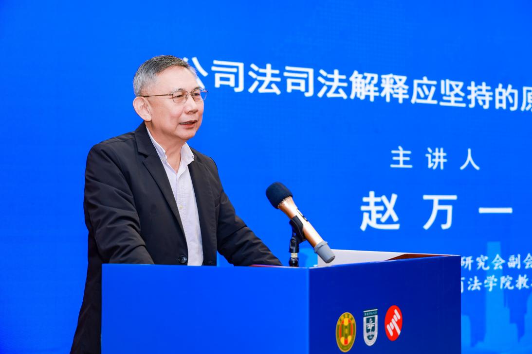 开幕式结束后,主题演讲环节精彩启幕,由中国法学会民法学研究会副会长、武汉大学法学院教授温世扬主持。中国法学会商法学研究会副会长、北京大学法学院教授刘凯湘率先登台,以《商事外观主义的相对性—— 以公司法解释征求意见稿中的股权转让与股权代持规则为例》为题展开深入阐述,精准剖析商事外观主义在新公司法框架下的适用边界与实践路径,为股权交易相关纠纷的解决提供了极具价值的理论指引。随后,中国法学会商法学研究会副会长、西南政法大学民商法学院教授赵万一以《公司法司法解释应坚持的原则和要求》为题发表演讲,从立法精神、实践需求、体系协调等多维度,系统阐述了司法解释制定过程中应遵循的核心准则与实践要求。主题演讲结束后,进入与谈互动环节,由中国法学会商法学研究会副会长、中山大学法学院教授周林彬主持,海南大学法学院教授蔡唱、广东外贸外语大学法学院教授张保红、华南理工大学法学院副教授张继承三位与谈人结合自身研究与实践经验,就演讲内容分享独到见解、展开深度研讨,现场思想碰撞激烈,学术氛围浓厚。互动环节结束后,研讨会设置茶歇时间,为参会嘉宾提供了自由交流的契机。
