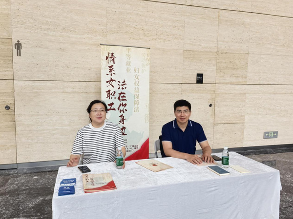 在咨询服务区,张永毅、孙志伟为女职工提供“一对一”免费法律咨询,围绕劳动合同、薪酬福利、“三期”待遇、反职场性骚扰等热点问题,耐心解答、释法说理,帮助女职工厘清权利边界,掌握维权路径。